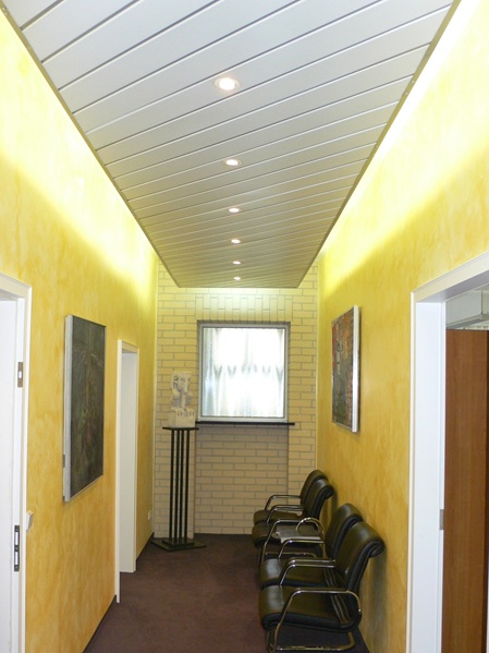 Die abgehängten ORIGINAL DOBNER Aluminium-Paneeldecken eignen sich besonders hervorragend für Flure!