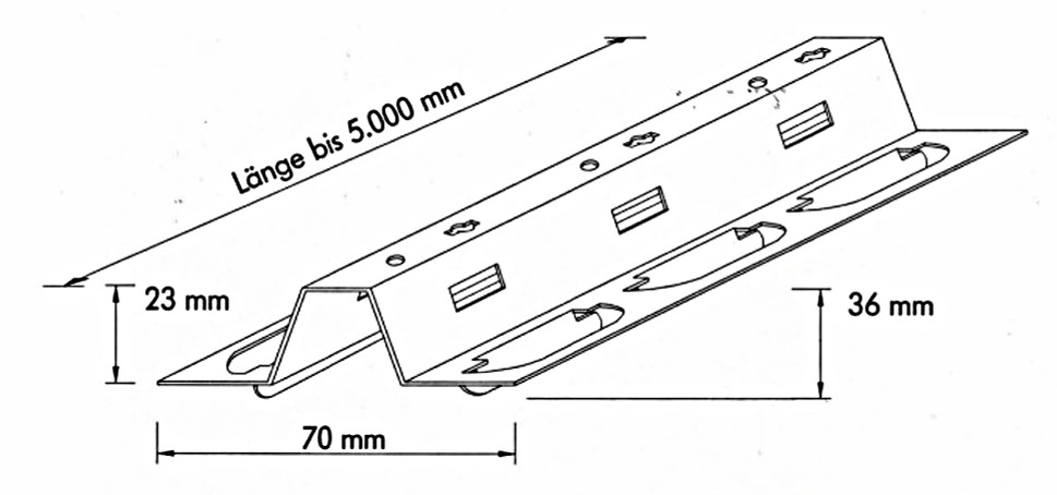 Die Tragschiene für die DOBNER MW-Baffles aus sendzimirverzinktem Stahl